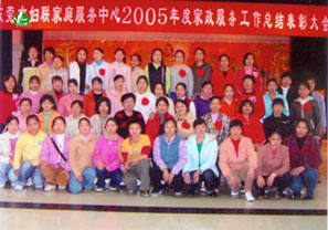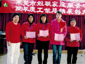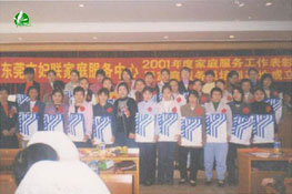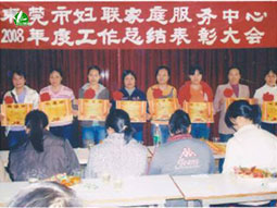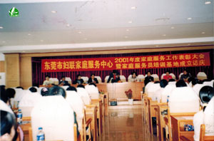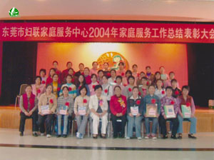 2001年12月15日,年度总结表彰大会,暨家庭服务员培训基地成立。市妇联副主席谭素红与刘秀莲经理出席大会。