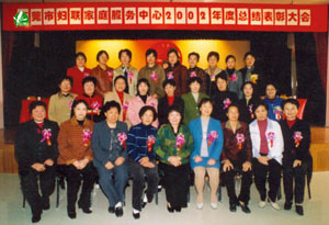 2002年12月15日。时任我市妇联主席黄碧莲(前排中)与前来参加我服务中心总结表彰大会和“家政服务研讨会”的广西、江西、湖南、粤北、粤西的妇联干部合影留念。