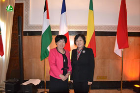 2014年初,全国妇联书记处书记张静率团赴摩洛哥参加国际妇女会议,图为张静书记与代表团成员,全国三八红旗手刘慕玲在大会上合影留念。